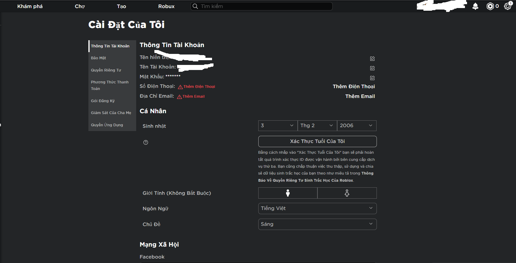 THÔNG TIN TÀI KHOẢN